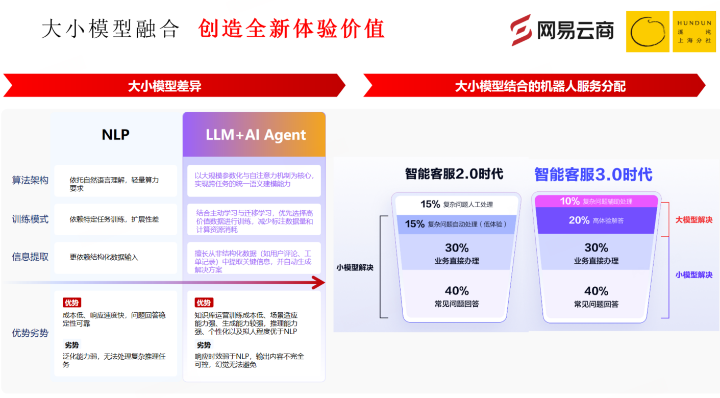 “很多企业做AI客服,要么只靠小模型,导致服务僵硬;要么全依赖大模型,成本高还控不住‘幻觉’。”宗鸣指出,网易云商AI Agent的核心突破,在于构建了“大小模型分层协同”的技术架构,让两者各展所长、动态配合,完美平衡效率与体验。
